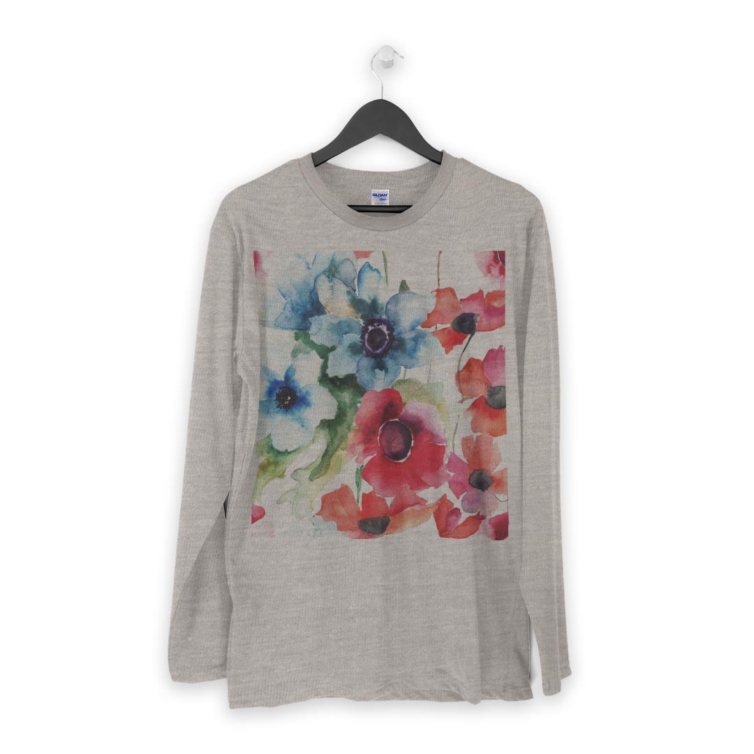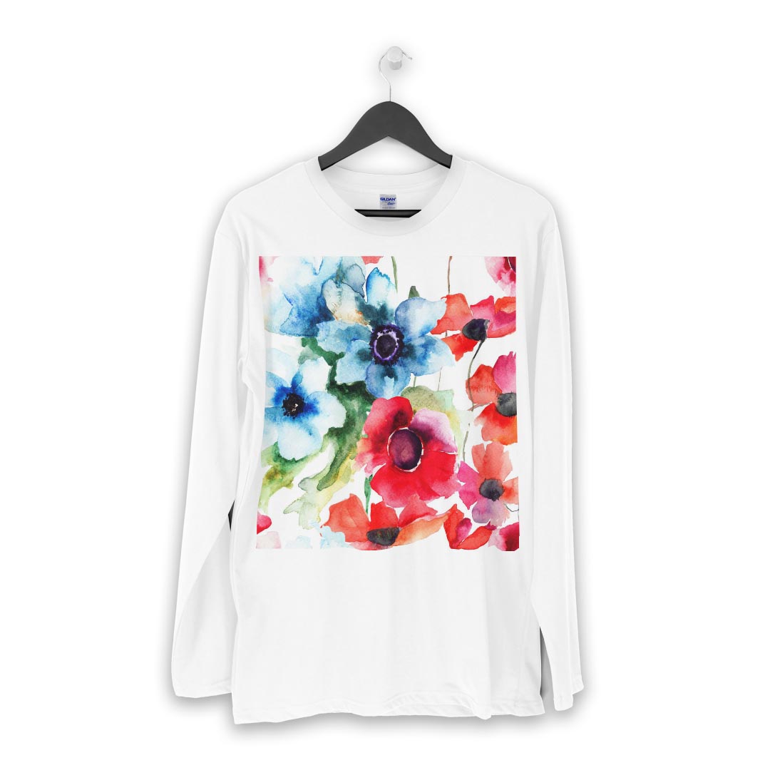 ロング tシャツ メンズ 長袖 ホワイト グレー デザイン XS S M L XL 2XL Tシャツ ティーシャツ T shirt long sleeve 008095 花 フラワー 水彩 赤 ブルー レッド