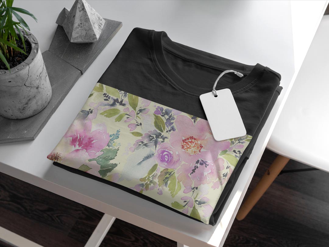 tシャツ メンズ 半袖 ブラック デザイン XS S M L XL 2XL Tシャツ ティーシャツ T shirt 黒 010233 フラワー 花 水彩