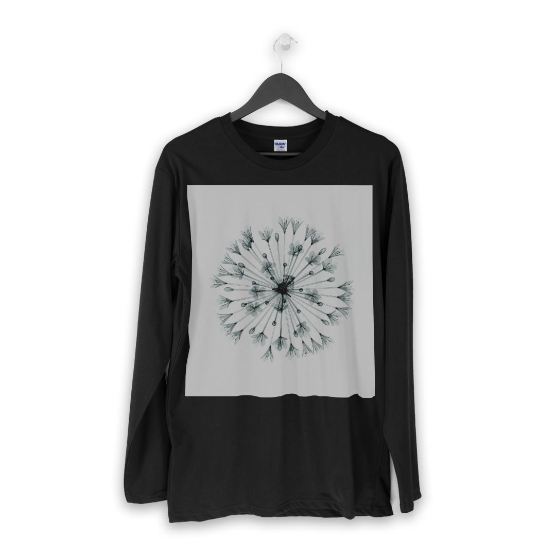 ロング tシャツ メンズ 長袖 ブラック デザイン XS S M L XL 2XL ロンT ティーシャツ 黒 black T shirt long sleeve 011026 花 フラワー 水彩