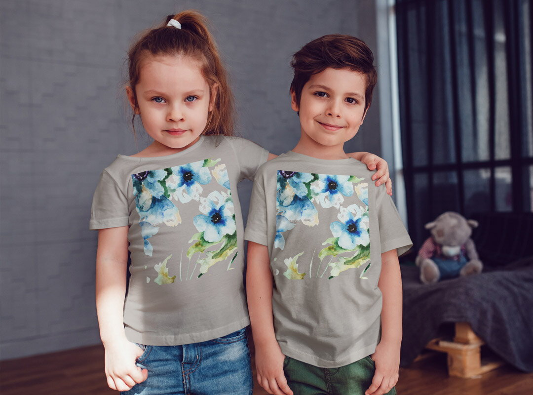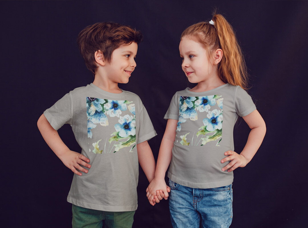 選べる20カラー tシャツ キッズ 半袖 黒地 ブラック デザイン 90 100 110 120 130 140 150 160 Tシャツ ティーシャツ T shirt 007959 フラワー 花 フラワー 青 ブルー 水彩