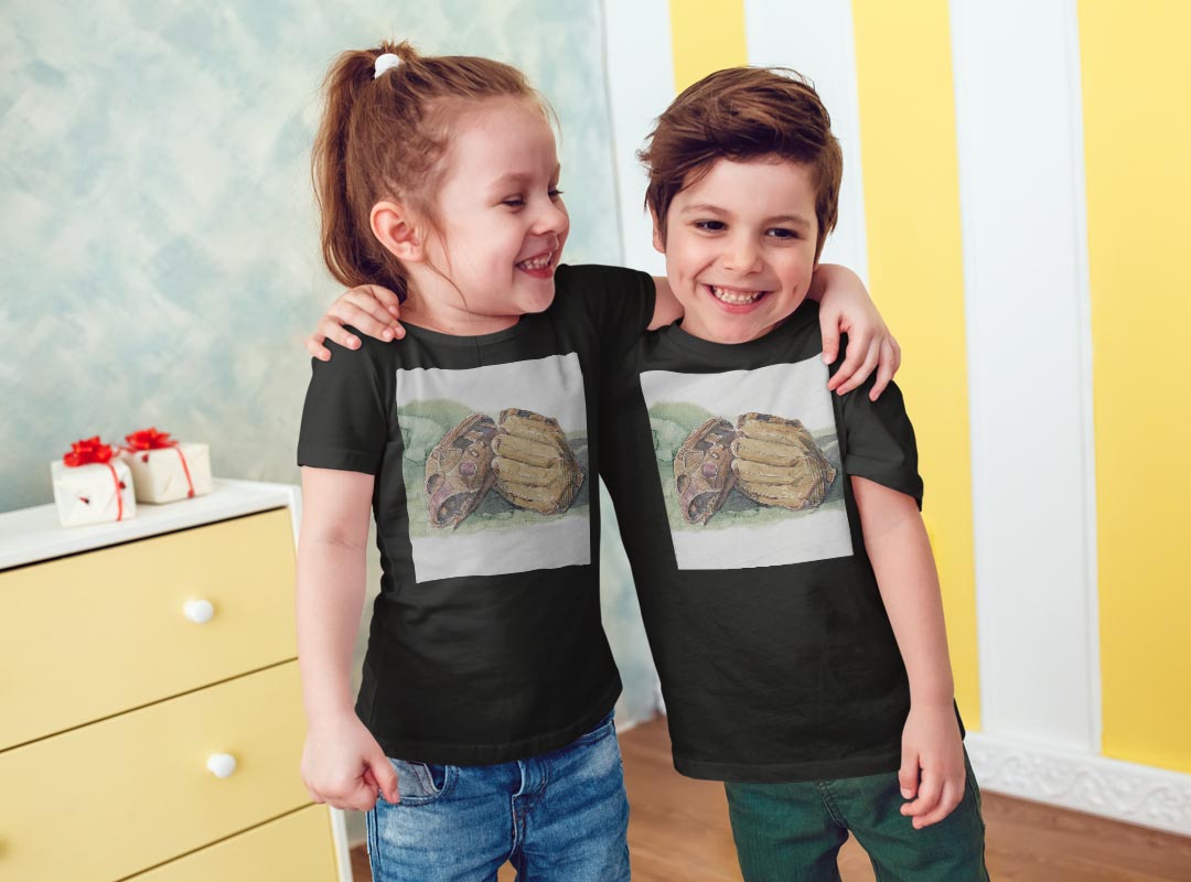 tシャツ キッズ 半袖 黒地 ブラック デザイン 90 100 110 120 130 140 150 Tシャツ ティーシャツ T shirt 008065 イラスト 水彩 グローブ 野球