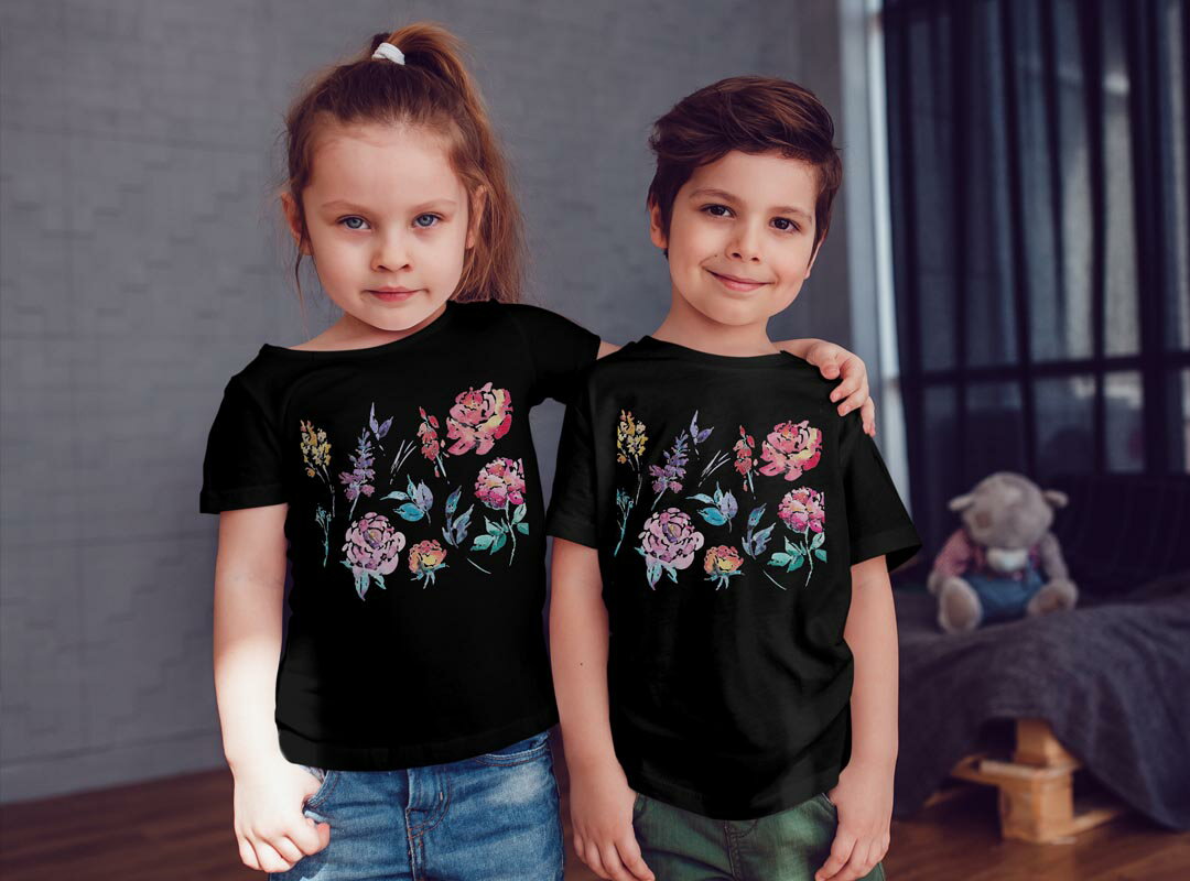 tシャツ キッズ 半袖 黒地 ブラック デザイン 90 100 110 120 130 140 150 Tシャツ ティーシャツ T shirt 013496 花 花柄 水彩