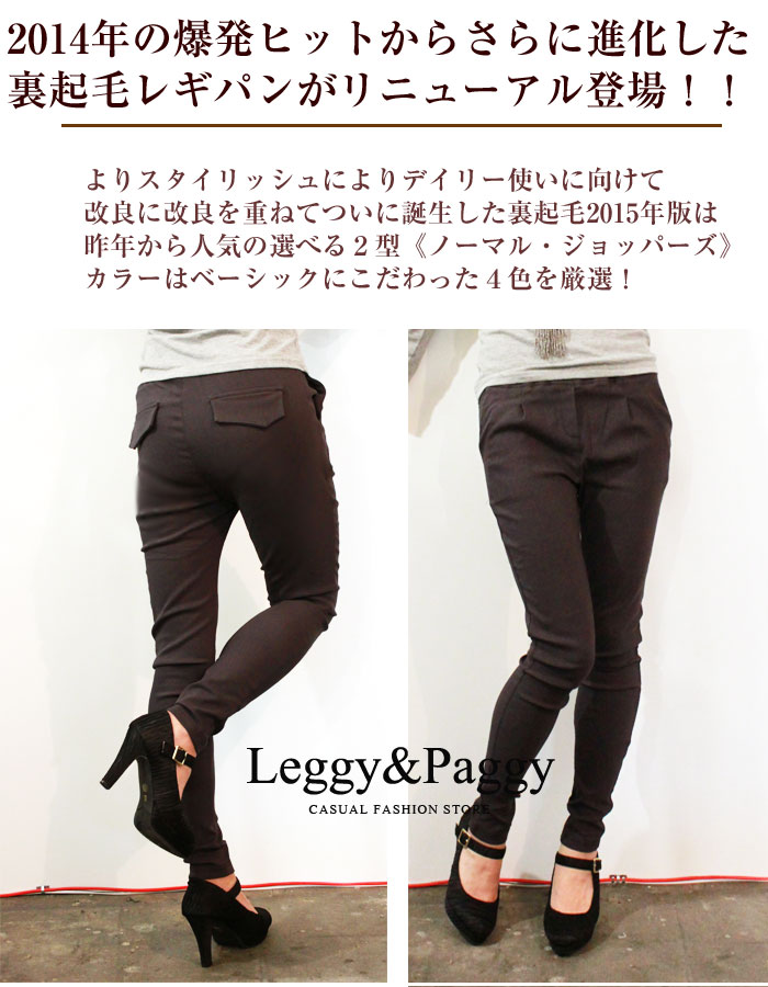 人気レギパンシリーズに 待望のLLサイズが仲間入り!! 冬に人気の裏起毛レギパンがパワーアップで再登場!! ぽかぽか暖か裏起毛レギパン2TYPE 秋冬に大ヒットの裏起毛レギパンがパワーアップバージョンになって登場!!昨年大人気だったジョッパーズタイプはもちろん、今年はサイズが増えてさらに選びやすく! コーデ:リブニットはココ→チェック しなやかでストレッチの効いたデイリー使いレギパン!!アクティブに動き回るあなたにはタック入りのジョッパーズがおすすめです。